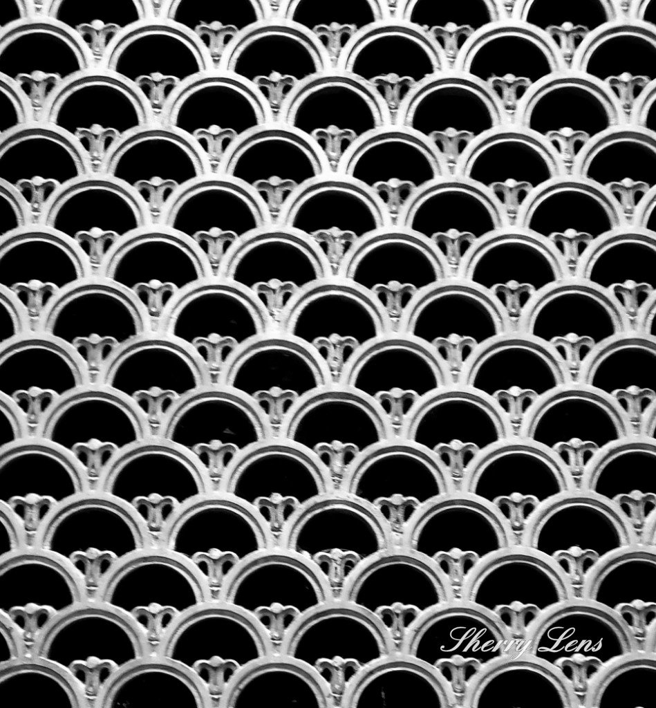 The grand patio bayside at Ringling Brother’s Museum, Sarasota, Florida. A perfect zigzag pattern!Patterns cut into the metal on this old cemetery shed door, Chillicothe, Ohio Ceiling patterns at The Biltmore Estate, Asheville, North Carolina A close-up, of an outside column at The Biltmore Estates Rotunda, at the Scioto County Courthouse, Portsmouth, Ohio Black and white shot of a radiator cover in the Scioto County Courthouse, Portsmouth, Ohio. Perfect art nouveau pattern!Perfect lines inside and out, Columbus, Ohio