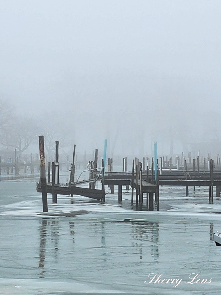 We started 2023, traveling up to northwest Ohio into Michigan. I captured this cold foggy morning marina on my Samsung 4 Flip galaxy phone with no filter.