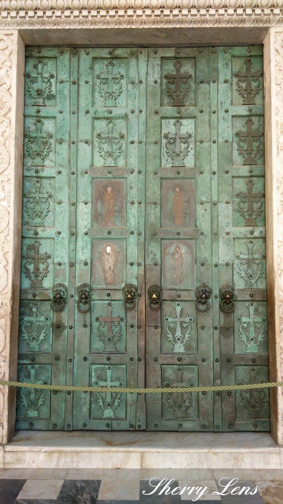 The brass doors with silver inlays of Christ, Mother Mary, and Saints, were specially built in 1065 in Constantinople, for the Cathedral of Saint Andrea in Amalfi, Italy.