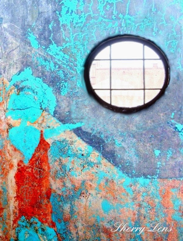 I was doing a shoot several years ago in an old abandoned building and it’s walls, as you can see had many layers of paint. There was a faint image that I thought looked like a woman from the 1920’s with her back to me. I enhanced the image with Picasa (an older photo editing tool), and added a window from another shot in the same building. The image looked as though she was pointing out, so gave her something to point at.